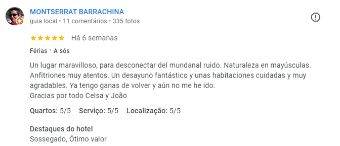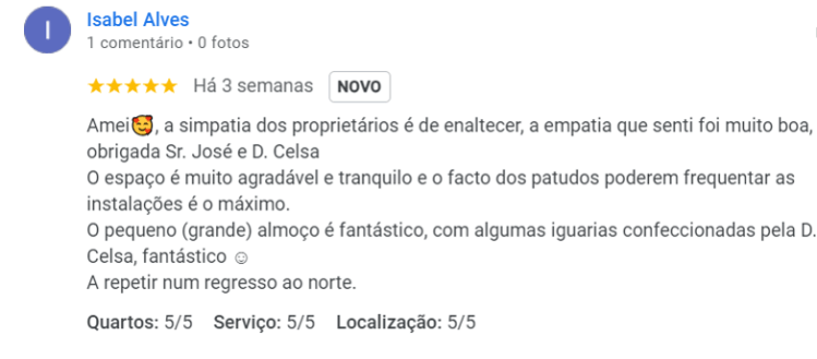 O que os nossos hóspedes dizem sobre nós e o nosso alojamento?